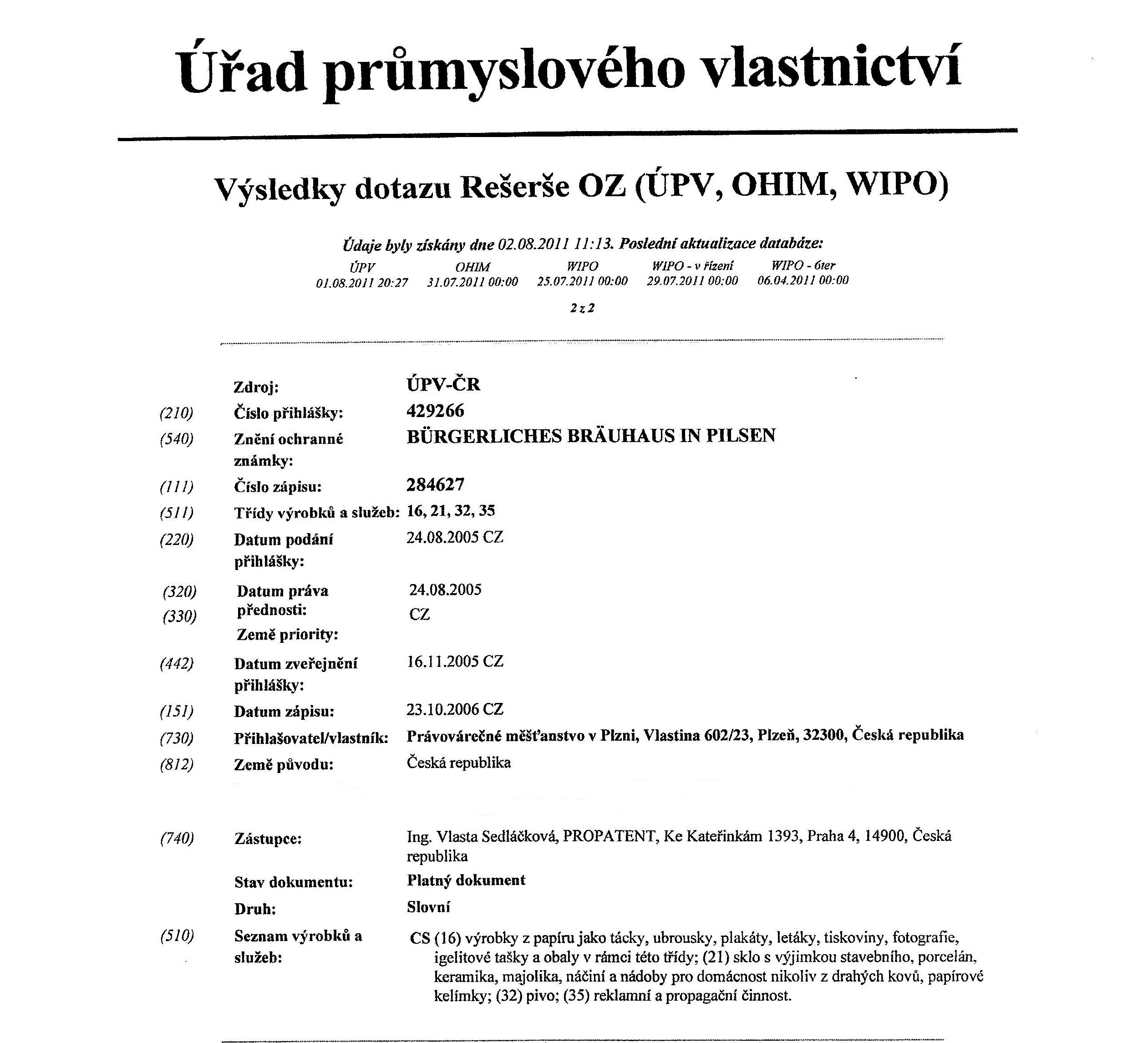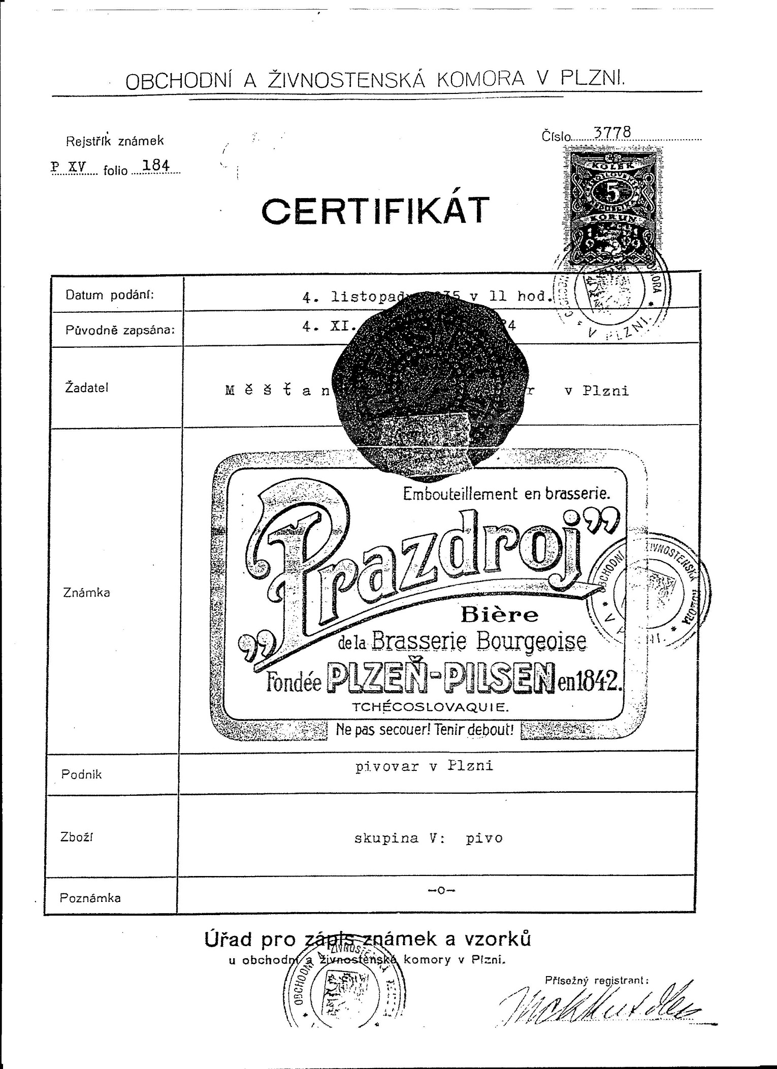 Ochranné známky registrované Právovárečným měšťanstvem v Plzni